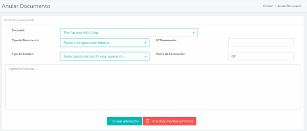 Ir a Emisión → Anular Documento, para ir a la sección donde se pueden anular diferentes documentos según sea la necesidad.